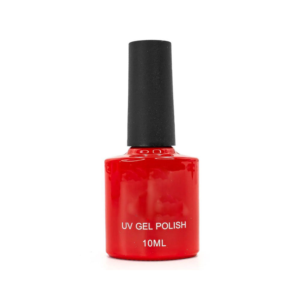 2 colores de gel semipermanente:Color rojo y nude, básicos para el día a día, aplique una capa fina y cure en lámpara por 90 segundos, agregue otra capa repitiendo el secado en lámpara.
