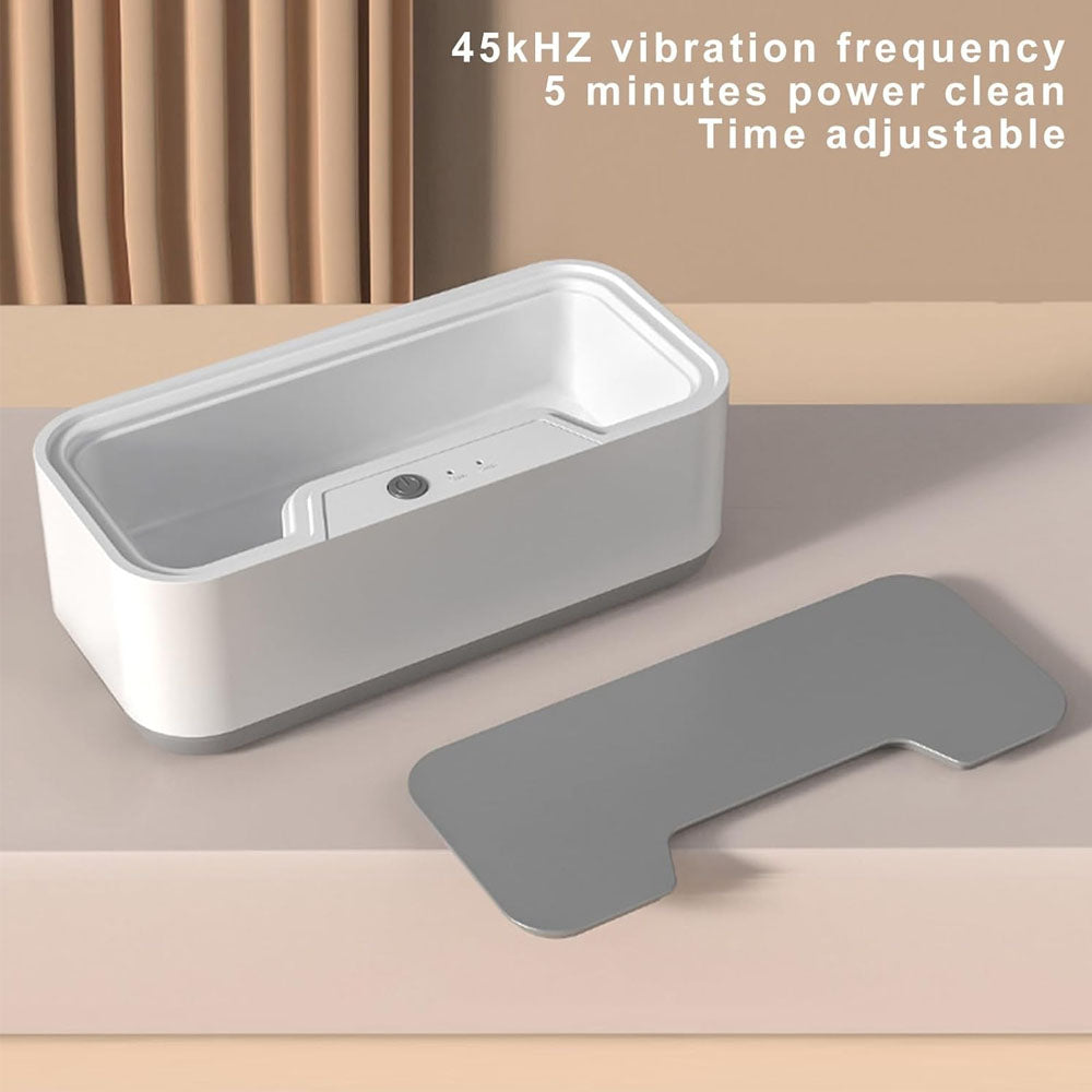 07503054044806 Limpiador ultrasónico diseñado específicamente para mantener tus anteojos y otros artículos valiosos en perfecto estado. Este dispositivo, que se presenta elegantemente en una caja sobre la mesa, utiliza una potente frecuencia de 45 KHz y una potencia de 15 W, lo que garantiza una eliminación suave y eficaz de manchas y suciedad. Ya sea que necesites limpiar tus anteojos, dentaduras postizas o joyas, este limpiador es la solución ideal para mantener tus pertenencias brillantes y como nuevas. Con un diseño de gran capacidad, este limpiador ultrasónico se adapta a una variedad de artículos, permitiéndote cuidar de tus objetos más preciados sin complicaciones. Sus dimensiones son perfectas para acomodar anteojos y joyas, con una longitud de 22 cm, un ancho de 10 cm y una altura de 7,5 cm. Además, su tratamiento de superficie impermeable de alta gama no solo proporciona durabilidad, sino que también ofrece una sensación táctil premium, asegurando que el dispositivo no solo sea funcional, sino también estéticamente agradable. Tres modos de tiempo: 3 minutos, 5 minutos y un modo de larga duración, todo accesible con solo pulsar un botón. Esto te permite elegir el tiempo de limpieza que mejor se adapte a tus necesidades, asegurando resultados óptimos en cada uso. Con este limpiador ultrasónico, disfrutarás de la tranquilidad de saber que tus artículos están siendo tratados con el cuidado que merecen, todo mientras se presenta de manera elegante en su caja sobre la mesa.