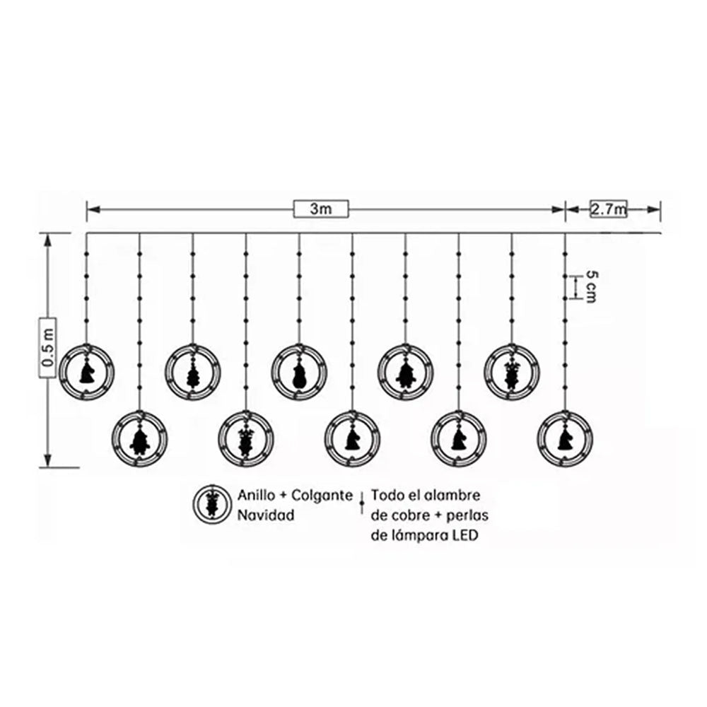 Dale un toque mágico a tus celebraciones con nuestra impresionante cortina de luces LED. Con un diseño encantador que cuelga del techo, esta decoración es perfecta para iluminar la parte superior de tu hogar, ventanas, barandales y balcones cubiertos.