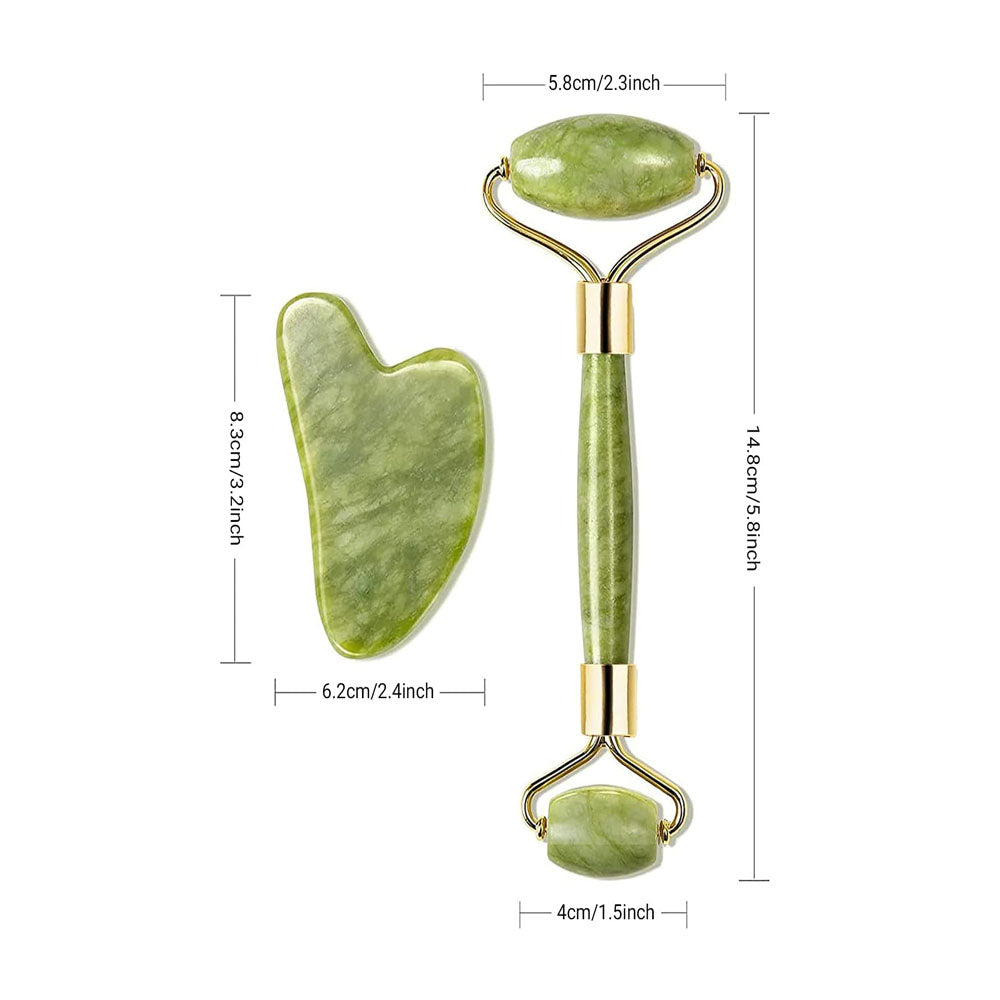 07503052374035 1. Dale un respiro a tu piel con este increíble rodillo de jade. Este rodillo está hecho de jade que te brindará una experiencia de masaje facial única. Con su suave textura y forma ergonómica, podrás disfrutar de un masaje relajante y revitalizante en la comodidad de tu hogar. 2. Los masajes faciales son una excelente manera de mejorar la tensión facial y la elasticidad de la piel. Con este rodillo de jade, podrás estimular la circulación sanguínea, lo que ayudará a reducir la hinchazón y eliminar toxinas acumuladas en tu rostro. Además, su uso regular puede ayudar a reducir la apariencia de arrugas y líneas de expresión, dejando tu piel más suave y rejuvenecida. 3. Pero eso no es todo, este rodillo de jade también es ideal para aliviar el estrés y relajar los músculos faciales. Desliza suavemente el rodillo sobre tu rostro y disfruta de una sensación refrescante y calmante. Además, este set también incluye un Gua Sha, una herramienta de masaje facial que te ayudará a renovar la piel de tu rostro, mejorando su apariencia y textura. En resumen, este rodillo de jade y Gua Sha son el complemento perfecto para tu rutina de cuidado facial. Disfruta de los beneficios de un masaje facial en casa y renueva la piel de tu rostro. ¡Dale a tu piel el cuidado que se merece con este rodillo de jade y Gua Sha! Color: Verde